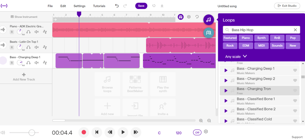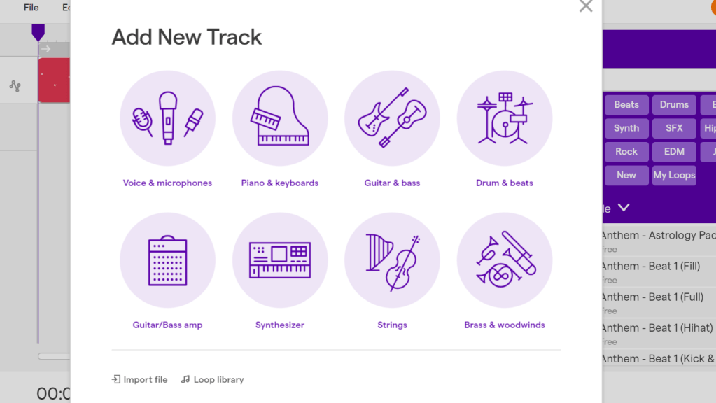 Well it’s your lucky day because there is a free browser-based program called Soundtrap and it is great! You do have to pay a monthly or annual fee to be able to use the full range of features the program has to offer. HOWEVER, a free trial lets you test out the program for a whole month and even if you end up not wanting to pay, the free features offered are still good for those who are new to playing around with looping (that’s me!).